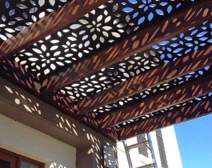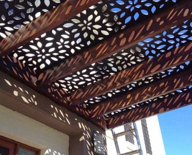 La pérgola de acero cortado a láser, diseñada específicamente para el Taller Igoa, destaca por su precisión y el cuidado puesto en cada detalle. Fabricada en acero cortado a láser, este elemento no solo ofrece una solución funcional al proporcionar sombra, sino que también se integra armoniosamente como una pieza de diseño en el entorno. El resultado es una estructura que combina perfectamente la funcionalidad con una estética única, creando un espacio tanto práctico como visualmente atractivo.